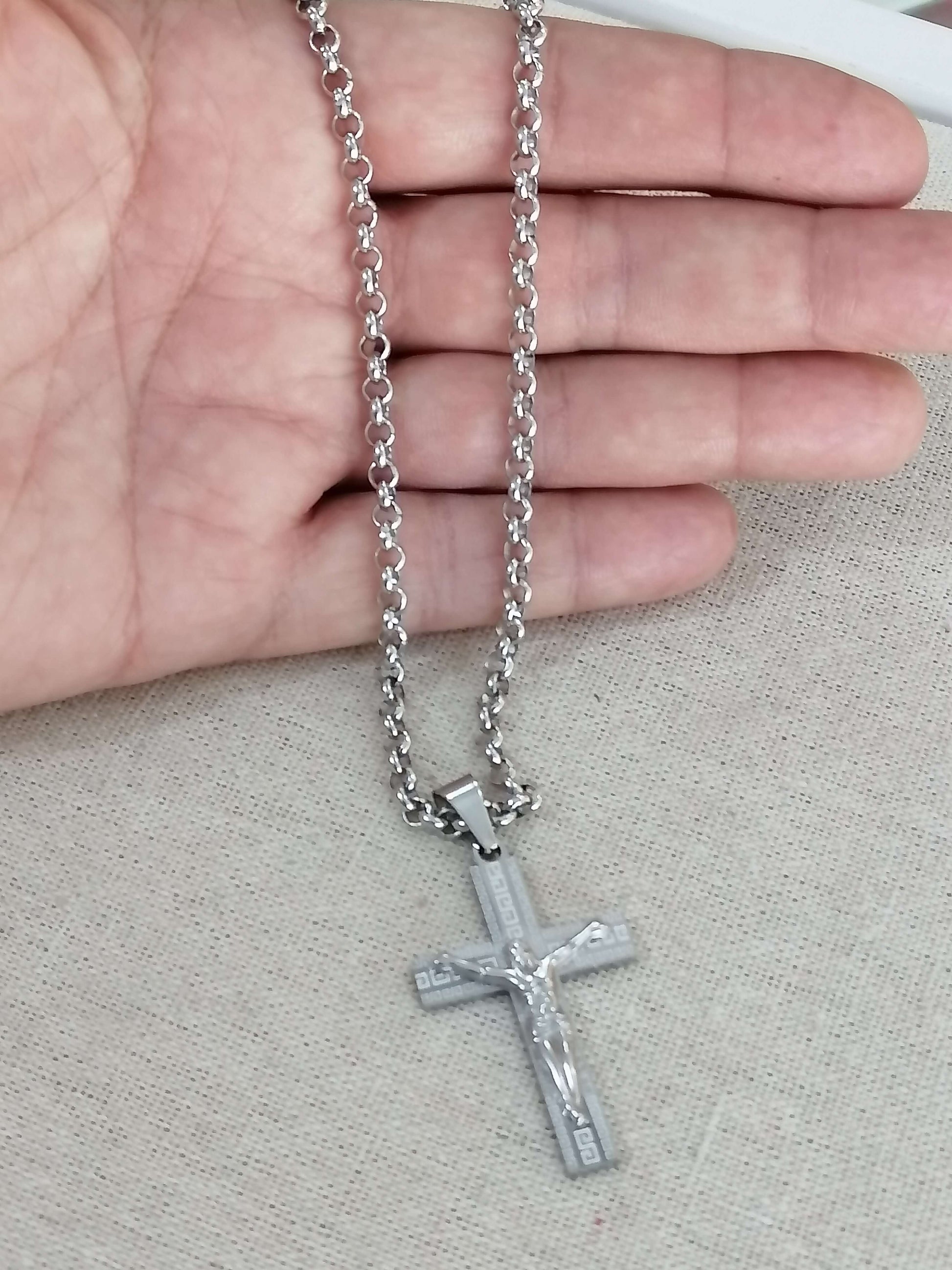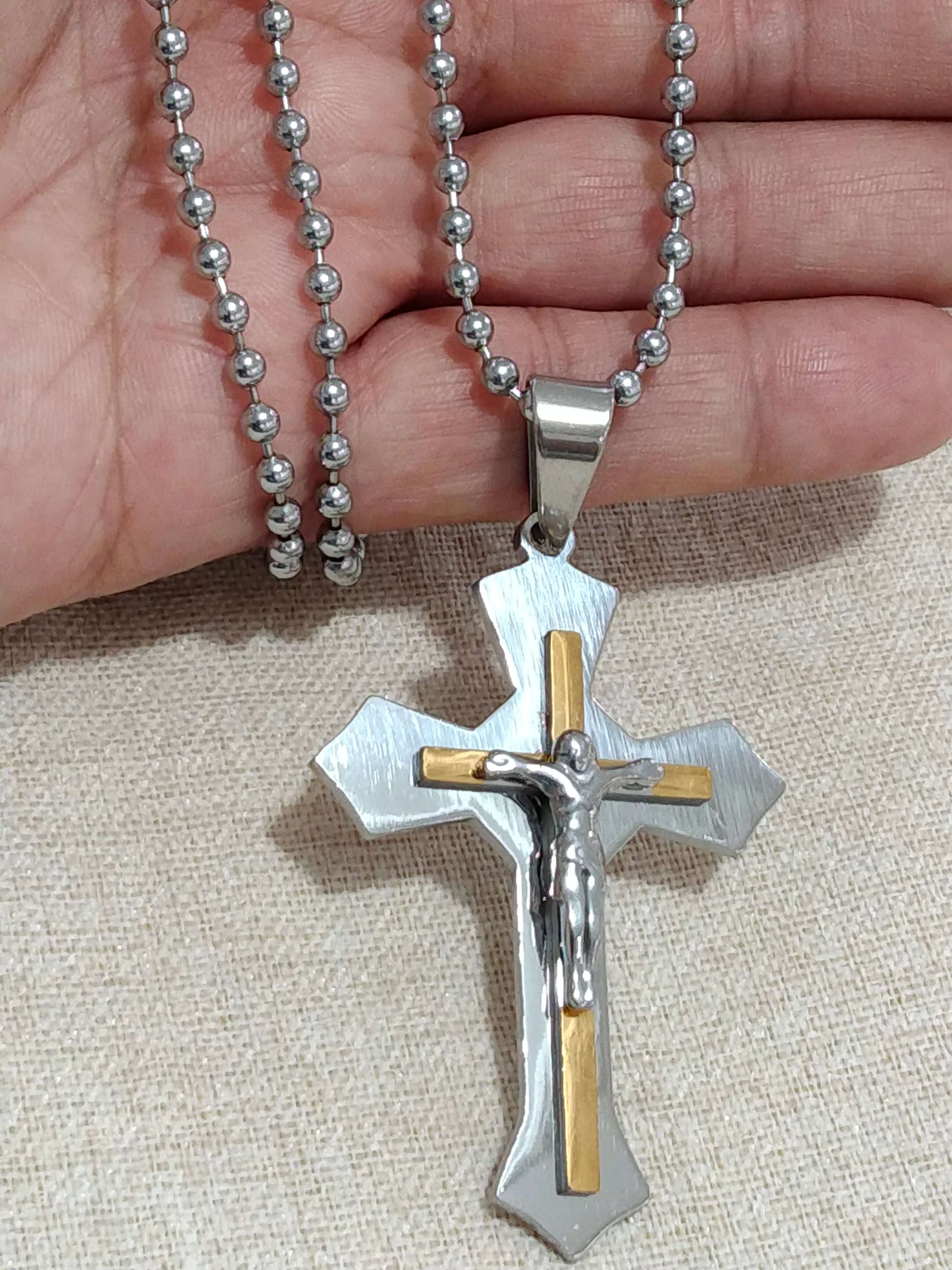 Take your style to the next level with our stainless steel men's chain! At 62cm long and 3mm thick, this silver chain is both durable and stylish. Plus, it features two-tone (gold and silver) or silver-tone crucifixes, so you can personalize your look. Make a fashion statement with our stainless steel chain!