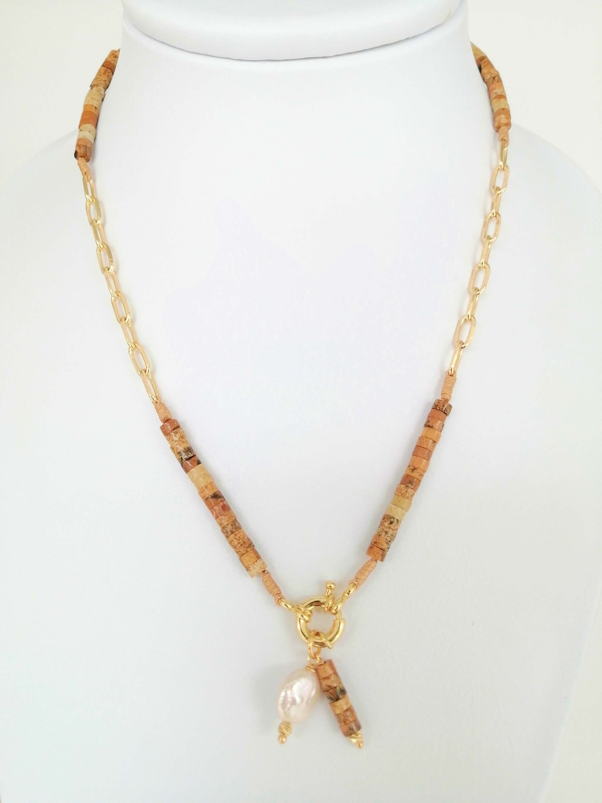Cylindrical Natural Stone Necklace with Rhodium Chain - Elegance and Natural Connection