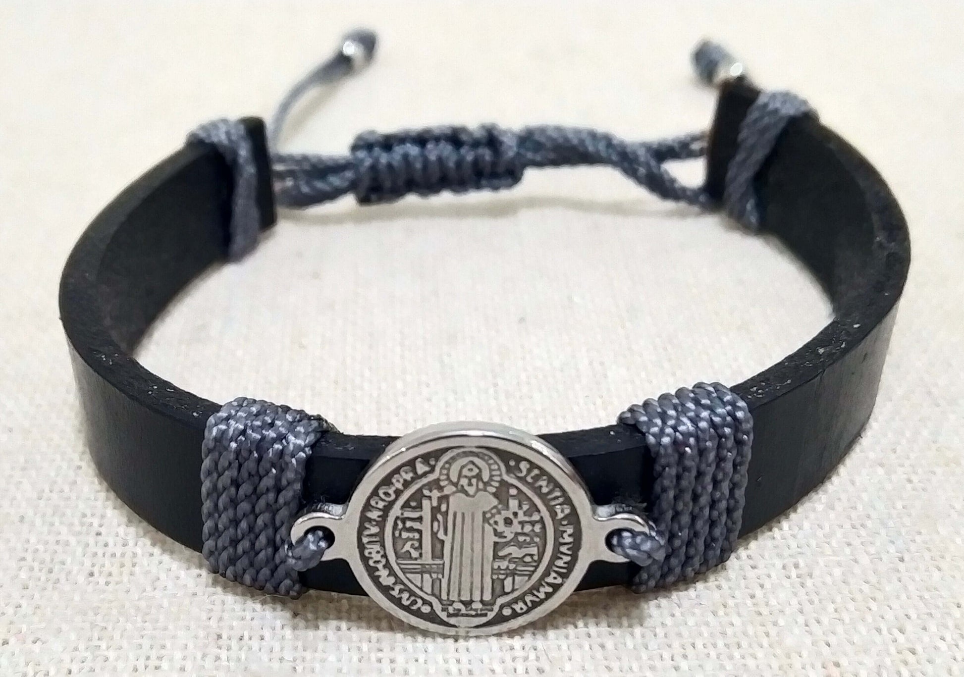 This adjustable leather and stainless steel bracelet is the perfect accessory for any man who wants to add a touch of style and devotion to his look. The premium natural leather and the decorative stainless steel medal with the seal of Saint Benedict Abbot guarantee long-term durability and resistance. Adjustable design fits all wrist sizes.
