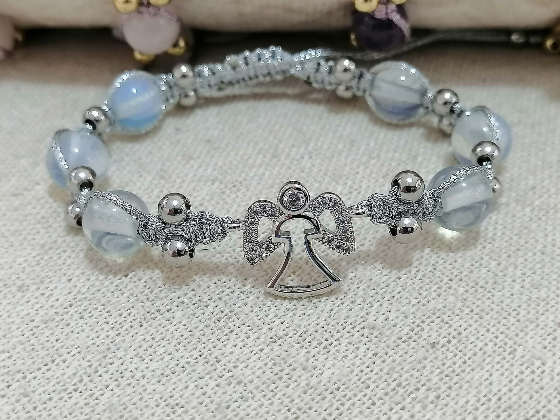 Experience the synergy between the mystical energy of opal and the calming presence of angels with this magnificent handmade bracelet. Opal, known for its healing and mystical quality, establishes a deep connection with the spiritual and protects you from negative energies that can disrupt your daily life. The bracelet's rhodium-plated, adjustable hardware adds lasting quality and sophisticated visual appeal. The elegantly carved angel figure on this bracelet represents the virtuous connection between the heavenly and earthly realms, channeling divine energy to protect and guide the wearer. Wear this bracelet to symbolize the ultimate sophistication, elegance and wisdom as you experience belief in the mystical and virtuous connection with powerful angels. A unique and impressive piece that will distinguish you wherever you go.