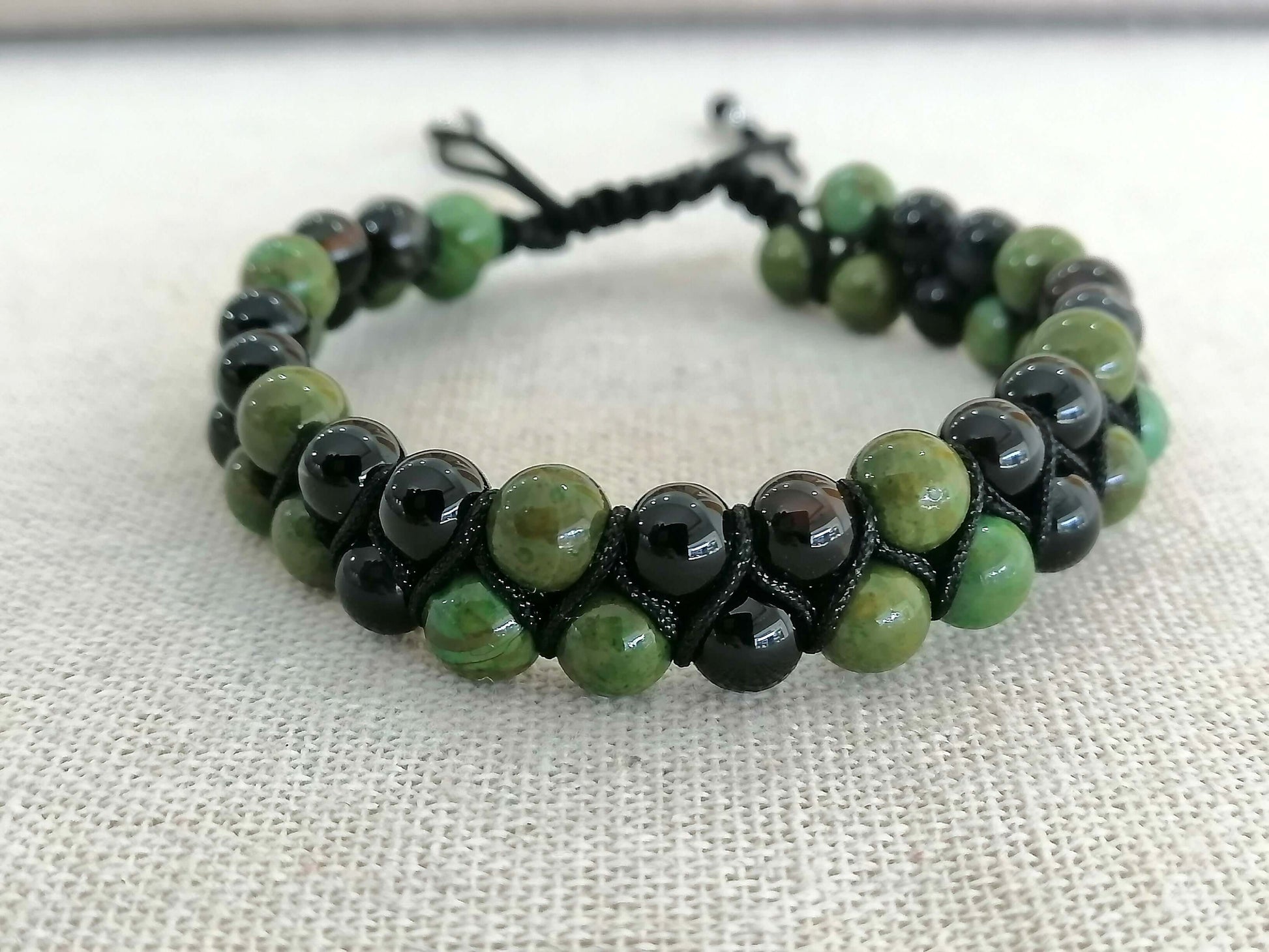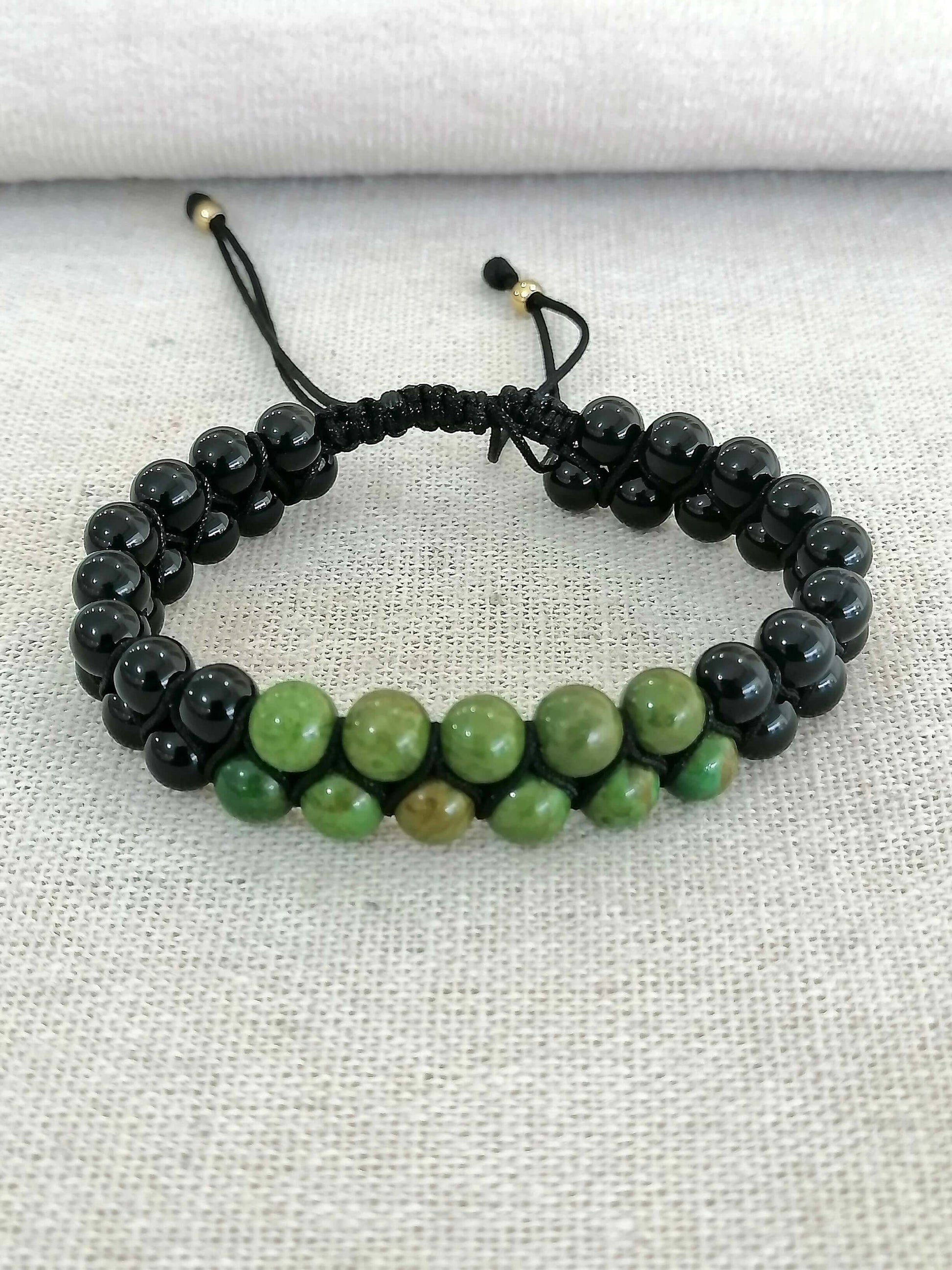 - Onyx and Taiwan jade : It is considered a stone of protection and purification. Believed to help dissipate negative energy and protect against negative influences, it is associated with harmony and balance in life. It is believed to help foster inner peace and tranquility.